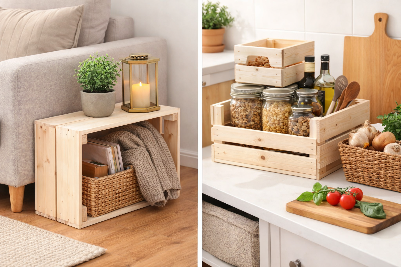 Drewniane skrzynki to nie tylko praktyczne rozwiązanie, ale też sposób na stworzenie wnętrza z charakterem – bez dużych kosztów i bez kompromisów.