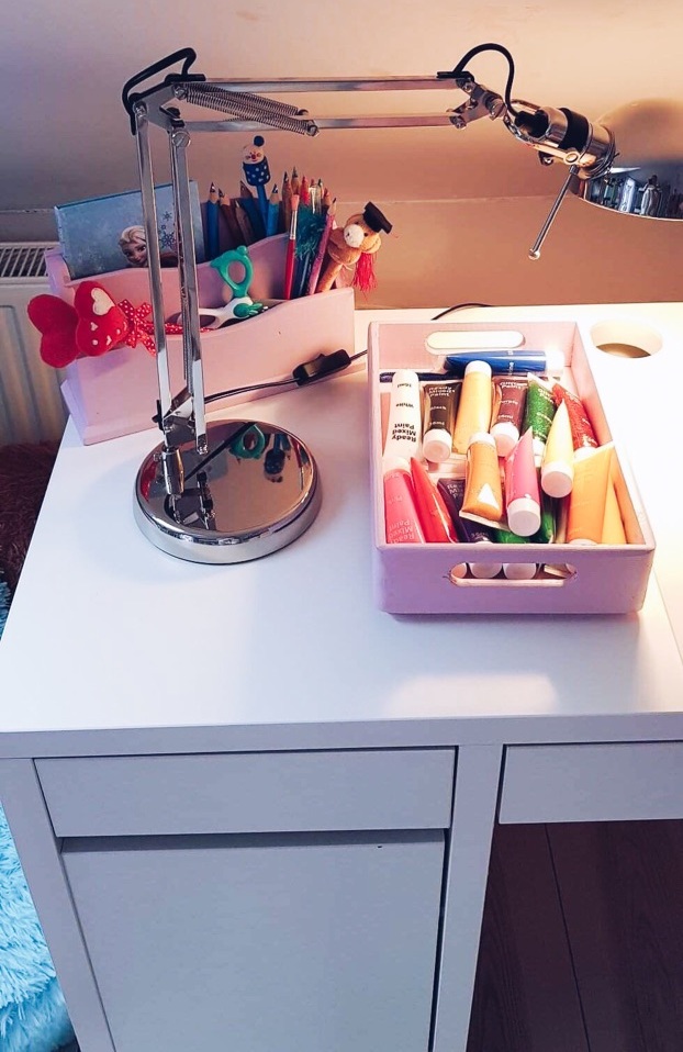 Pierwszym przydatnym elementem może być drewniany przybornik. Dlaczego? Bo to właśnie w nim możemy umieścić, długopisy, flamastry, przedmioty lub inne urządzenia (kalkulator), niewielkich rozmiarów, które są niezbędne podczas nauki. Taki przybornik możecie znaleźć w naszym sklepie internetowym. Jest on w 100% wykonany z drewna sosnowego. Dodatkowym atutem tego przedmiotu jest fakt, iż można go z łatwością przyozdobić. Takie rozwiązanie z pewnością docenia osoby, które interesuje decoupage. Kolejnym przedmiotem może być kuferek. Nie dużych rozmiarów, ale taki, który pomieści np. kredki czy karteczki i notesiki. Zdarzyło nam się widzieć takie biurka, na których różne kartki nie mogły znaleźć swojego miejsca. Wtem można wtrącić, iż można je zwyczajnie poukładać na blacie. Jednak czynniki takie jak np. wiatr, który zawieje, gdy mamy otwarte okno, dzieci bawiące się nieopodal mogą spowodować ich uszkodzenie. Dlatego właśnie możemy umieścić ów wymienione przedmioty w takim kuferku, gdzie z pewnością będą bardzo bezpieczne. Kolejny element jest bardziej dekoracyjny, ale również może się przydać w momencie, gdy np. chcemy wytrzeć ręce podczas malowania. Mamy tu na myśli chusteczniki. W nich możemy elegancko przechowywać chusteczki, z których każdy może skorzystać. Wiadomo, różne rzeczy mogą się wydarzyć: może akurat wasze dzieci dopaść mocne kichnięcie nosa. Chusteczki muszą być pod ręką, a przyznacie, że takie rozwiązanie na pewno będzie lepiej wyglądać niż foliowa paczka rzucona na blacie. Półka nad biurkiem! Tak to kolejne rozwiązanie, które bardzo może się nam przydać. Tak przynajmniej my uważamy. To tam można umieścić rodzinne zdjęcie lub prace malarskie Waszego dziecka. Swoje miejsce mogą znaleźć tam również inne elementy dekoracyjne lub na przykład książki, segregatory, a także książki. Aby strefa do nauki nie kojarzyła się wyłącznie z obowiązkiem i stresem , można również powiesić zdjęcia ulubionych bohaterów lub ukochanego zwierzaka. My w taki sposób urządzilibyśmy domowy kącik nauki dla najmłodszych. Jak Wam podoba się ten pomysł? W jaki sposób Wy zaaranżowalibyście swoje miejsce do pracy? Widoczne zdjęcia zostały przesłane przez jedną z naszych klientek za które serdecznie dziękujemy ;)