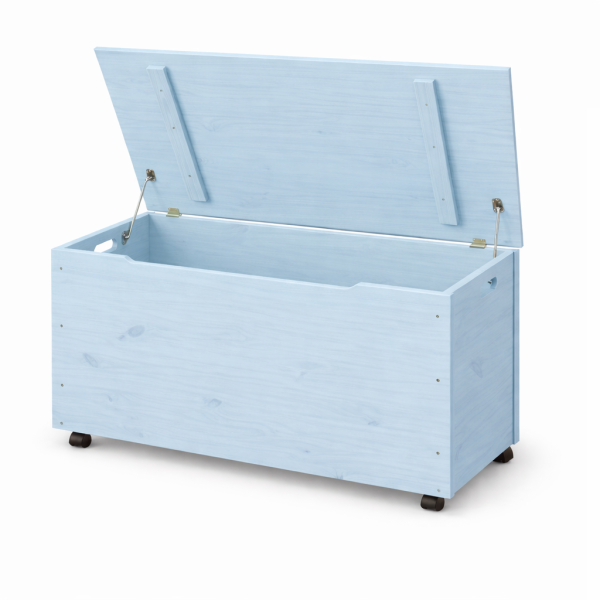Skrzynia wykonana jest z trwałego drewna sosnowego, które przewyższa jakością plastikowe odpowiedniki. Solidne wykonanie i odporność na codzienne użytkowanie sprawiają, że to inwestycja na wiele lat. Niebieski kolor nadaje wnętrzu lekkości, świeżości i nowoczesnego charakteru, jednocześnie wprowadzając przyjemny, spokojny akcent.