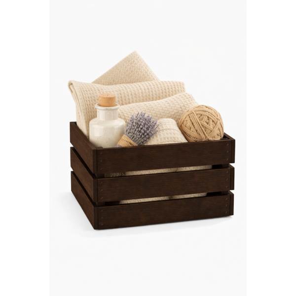 Dlaczego warto wybrać naszą skrzynkę drewnianą 46x31x25 cm w kolorze btązowym?