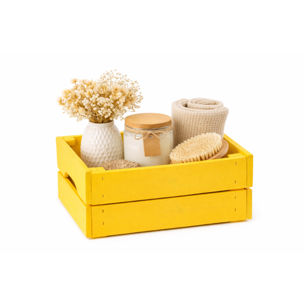 Dlaczego warto wybrać naszą skrzynkę drewnianą 31x23x15 cm w kolorze żółtym?