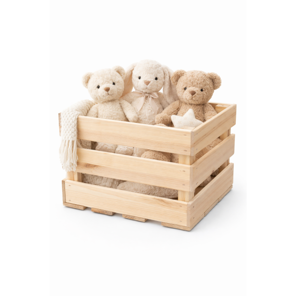 Solidna konstrukcja zapewnia stabilność i długą żywotność, a naturalna struktura drewna sprawia, że każda skrzynka ma swój unikalny charakter. To praktyczny element wyposażenia, który pasuje do każdego wnętrza. Otwarta konstrukcja zapewnia szybki dostęp do zawartości, a stabilna forma i wygodne uchwyty pozwalają łatwo ustawić skrzynkę na półce, blacie lub podłodze.