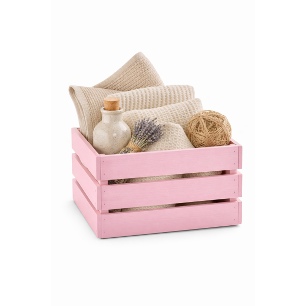 Dlaczego warto wybrać naszą skrzynkę drewnianą 46x31x25 cm w kolorze różowym?