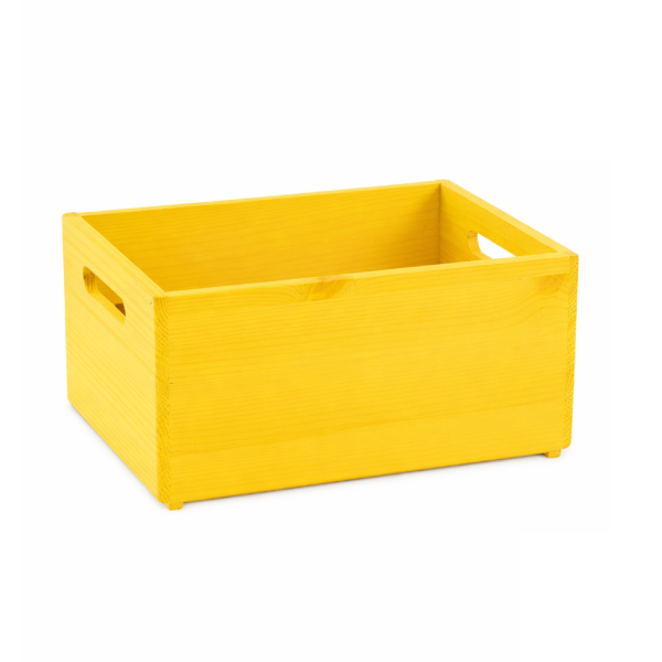 Dlaczego warto wybrać właśnie naszą drewnianą skrzynkę z uchwytami 30x20x13,5 cm w kolorze żółtym?