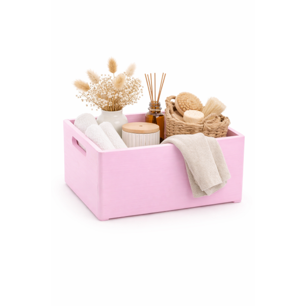 Wybierając naszą różową drewnianą skrzynkę, stawiasz na funkcjonalność połączoną z delikatnym, przyjemnym kolorem. To praktyczny organizer, który wnosi do wnętrza lekkość i przytulny akcent.