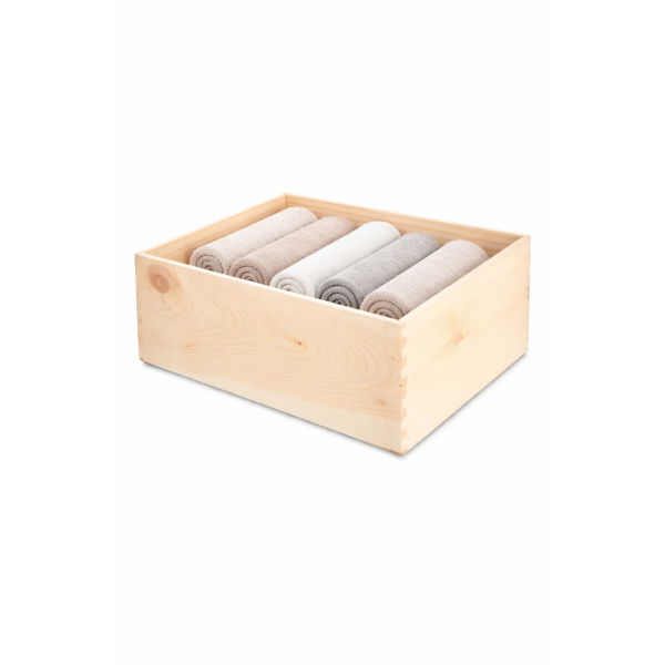 Naturalne drewno i prosta forma sprawiają, że skrzynka doskonale komponuje się z nowoczesnymi, skandynawskimi i klasycznymi aranżacjami. Zyskujesz nie tylko praktyczny organizer, ale także estetyczny element wyposażenia, który podkreśla charakter pomieszczenia.