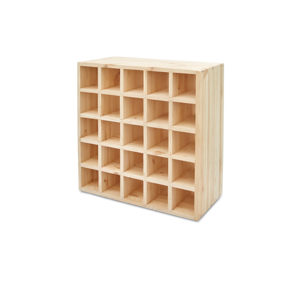 Konstrukcja wzmocniona kratkowym układem desek zapewnia pewne podparcie dla butelek, dzięki czemu Twoje wino jest bezpieczne i odpowiednio przechowywane. Naturalne drewno sosnowe to materiał trwały, odporny na uszkodzenia i przyjazny dla środowiska.