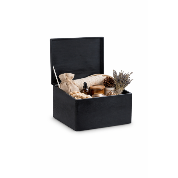 Skrzynka drewniana z deklem 40x30x23 /315214A Jet black, bez uchwytów