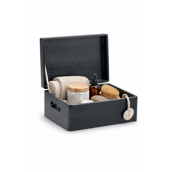 Głęboka czerń nadaje szkatułce nowoczesny, ponadczasowy charakter. Pięknie prezentuje się na stoliku kawowym, komodzie, półce czy biurku. To nie tylko praktyczny organizer, ale także stylowy element dekoracyjny, który podkreśla estetykę wnętrza.
