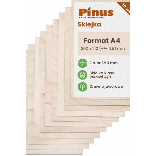 SKLEJKA DEKIEL 300X210X3 MM (Sklejka 10 x A4 3mm | 300 x 210 (+/- 0,5) mm)