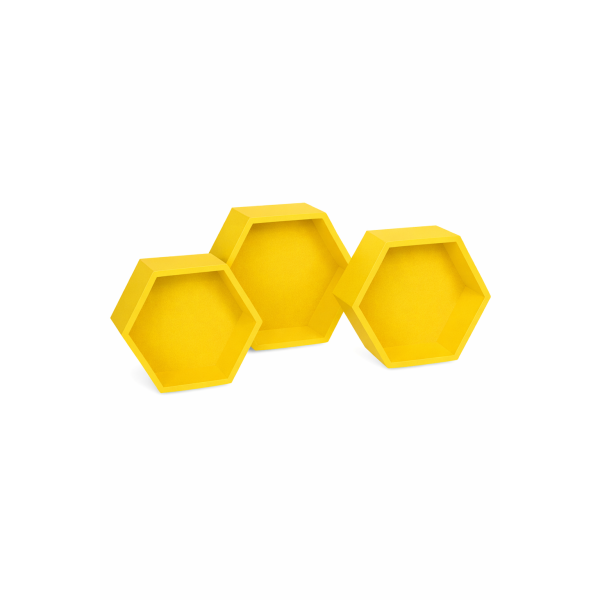 Zestaw półek ściennych drewnianych plaster miodu HEKSAGON - żółty