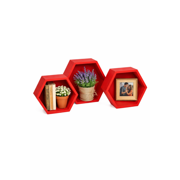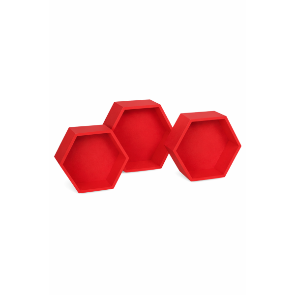 Zestaw półek ściennych drewnianych plaster miodu HEKSAGON - czerwony