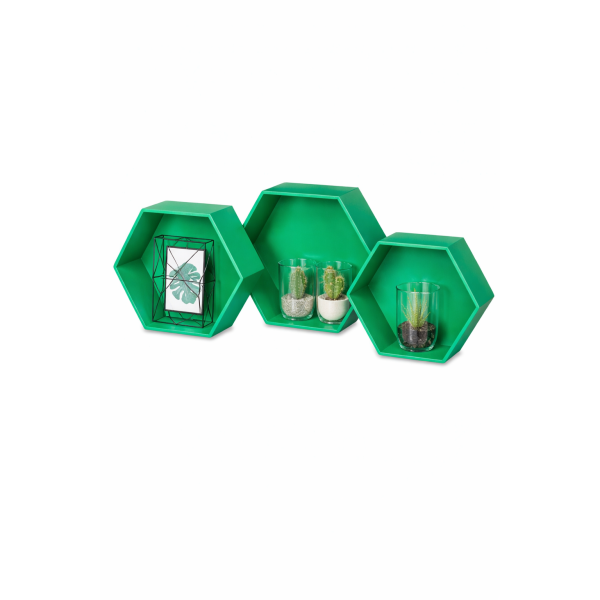 Zestaw półek ściennych drewnianych plaster miodu HEKSAGON - zielony