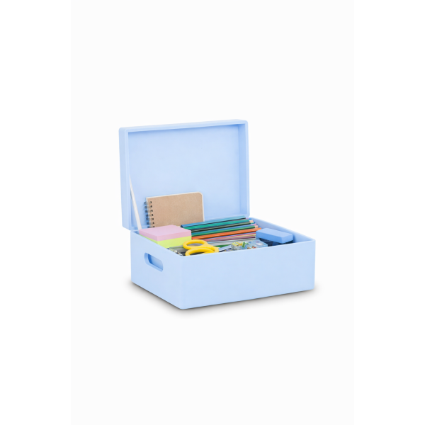 Delikatny niebieski odcień nadaje szkatułce elegancki i przytulny charakter. Pięknie prezentuje się na toaletce, komodzie, półce lub biurku, wprowadzając do wnętrza lekkość i dekoracyjny akcent.