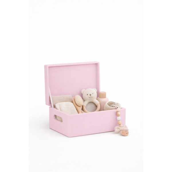 Skrzynka drewniana z deklem 30x20x13,5 /315005C Light pink ,dekiel ze sklejki