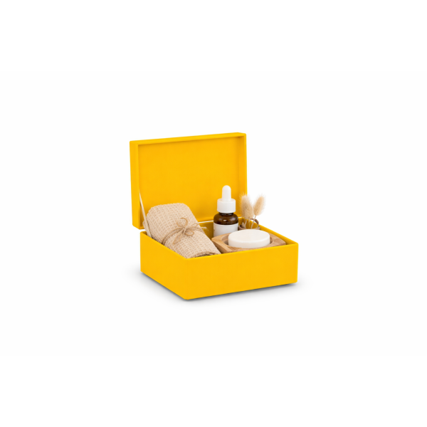 Drewniana skrzynka dekoracyjna 30x20x13,5 cm Żółta bez uchwytów