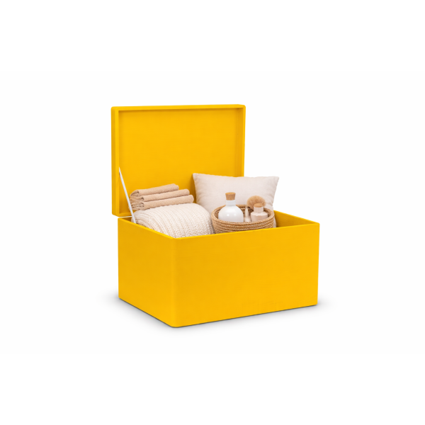 Dlaczego warto wybrać właśnie naszą skrzynkę drewnianą 40x30x23,5 cm w kolorze żółtym?