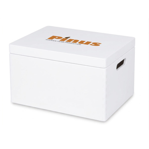 Personalizowana skrzynka drewniana zamykana z nadrukiem UV 40x30x23 cm biała